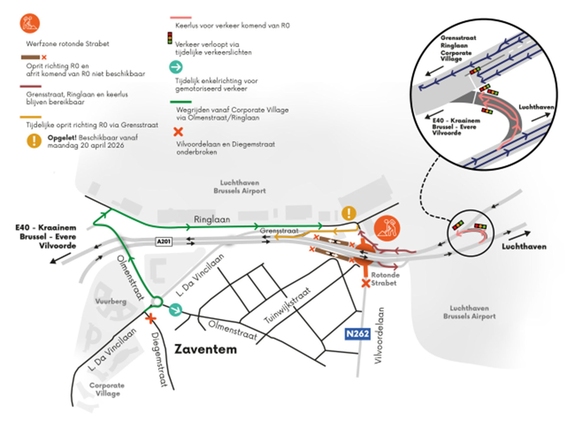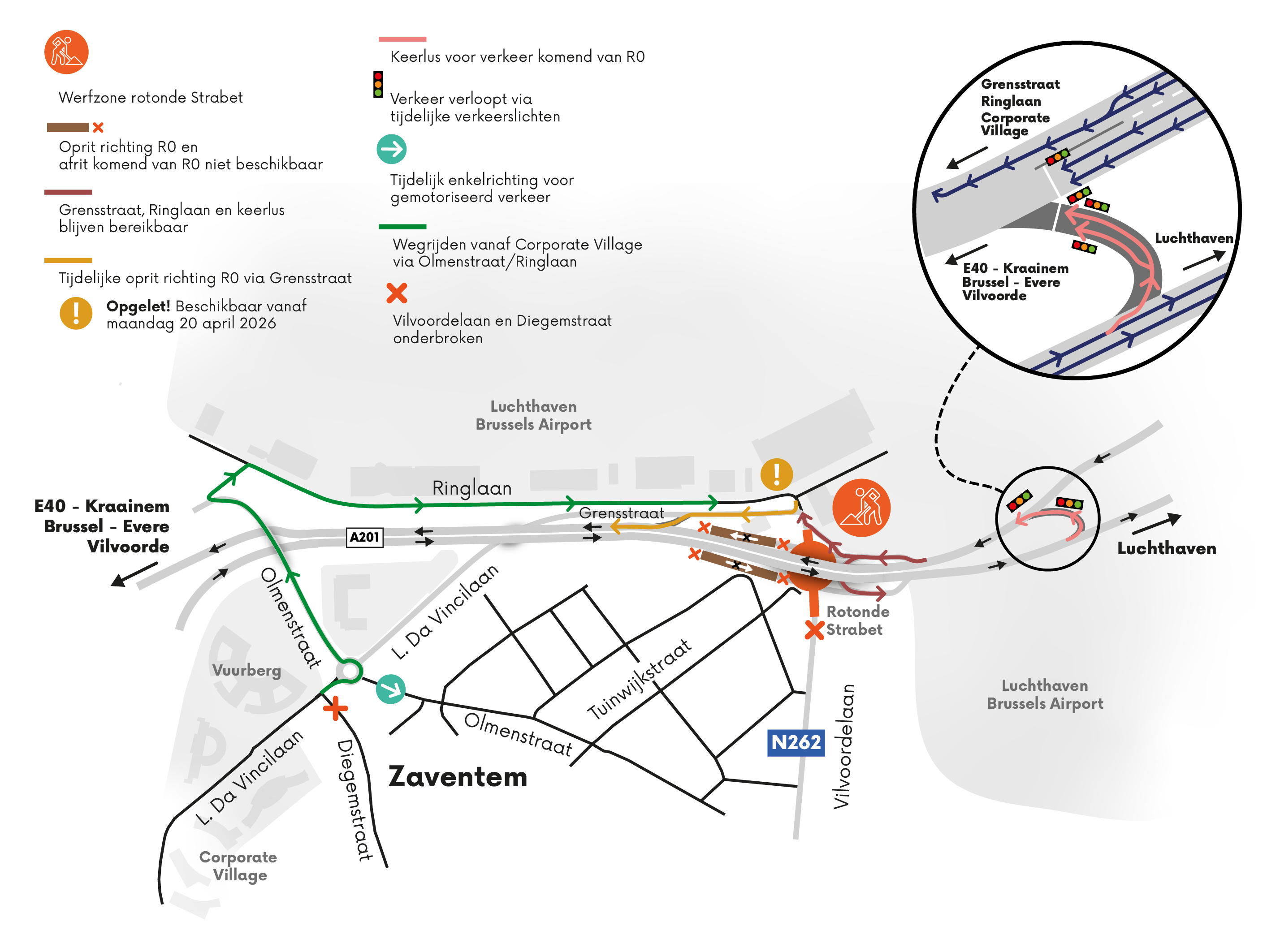 Cyclists and pedestrians coming from Zaventem will only be affected during the first week (April 13-19):