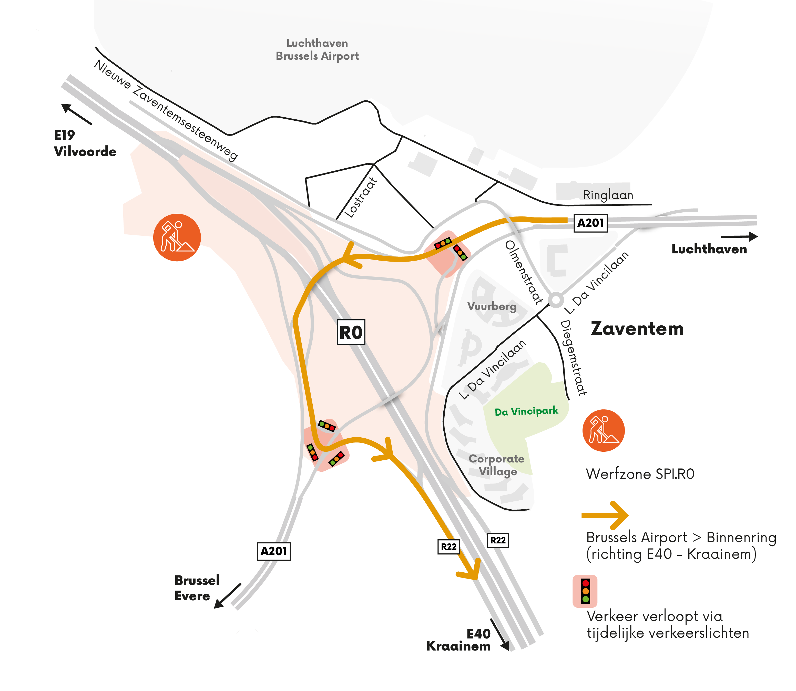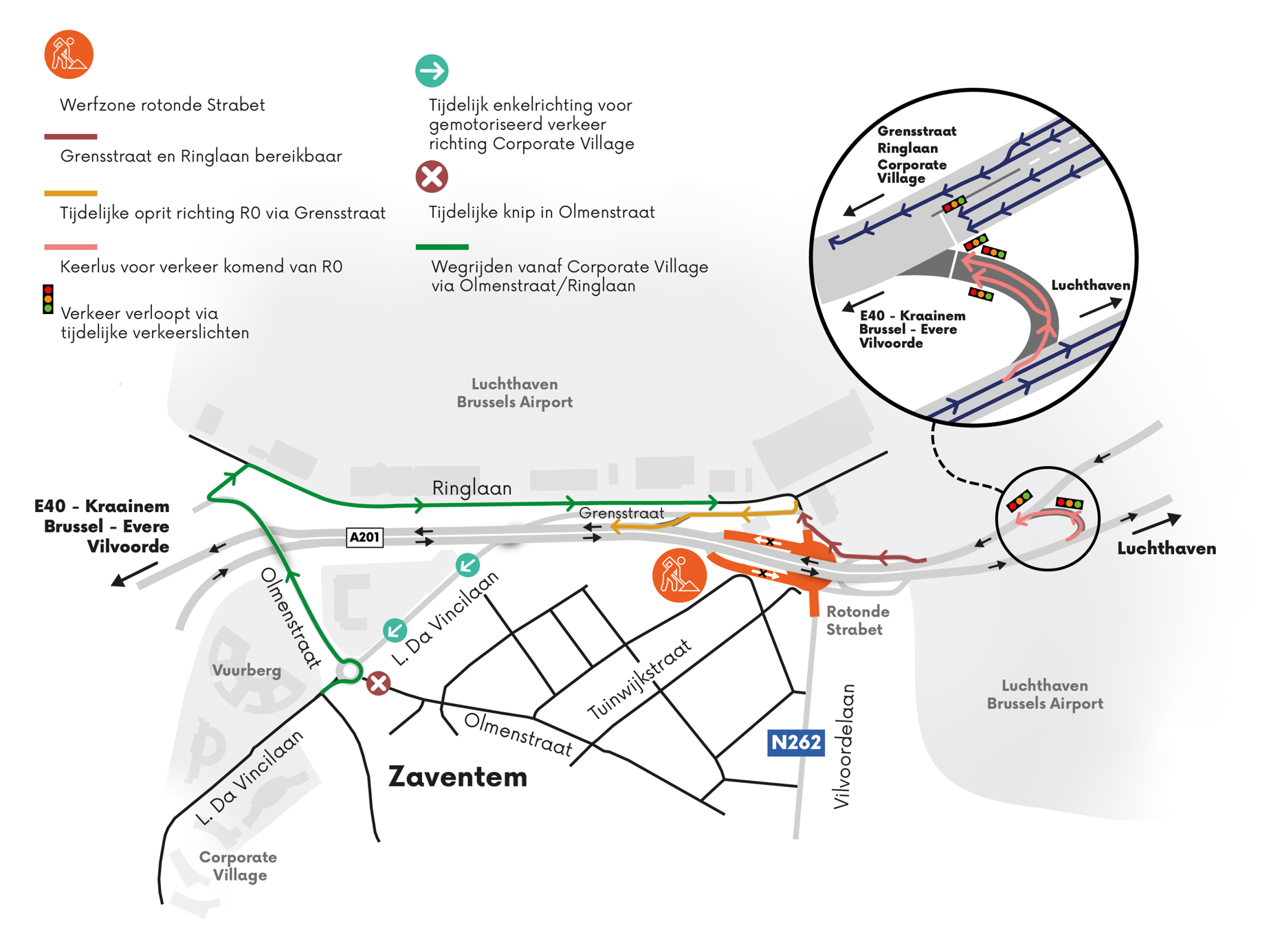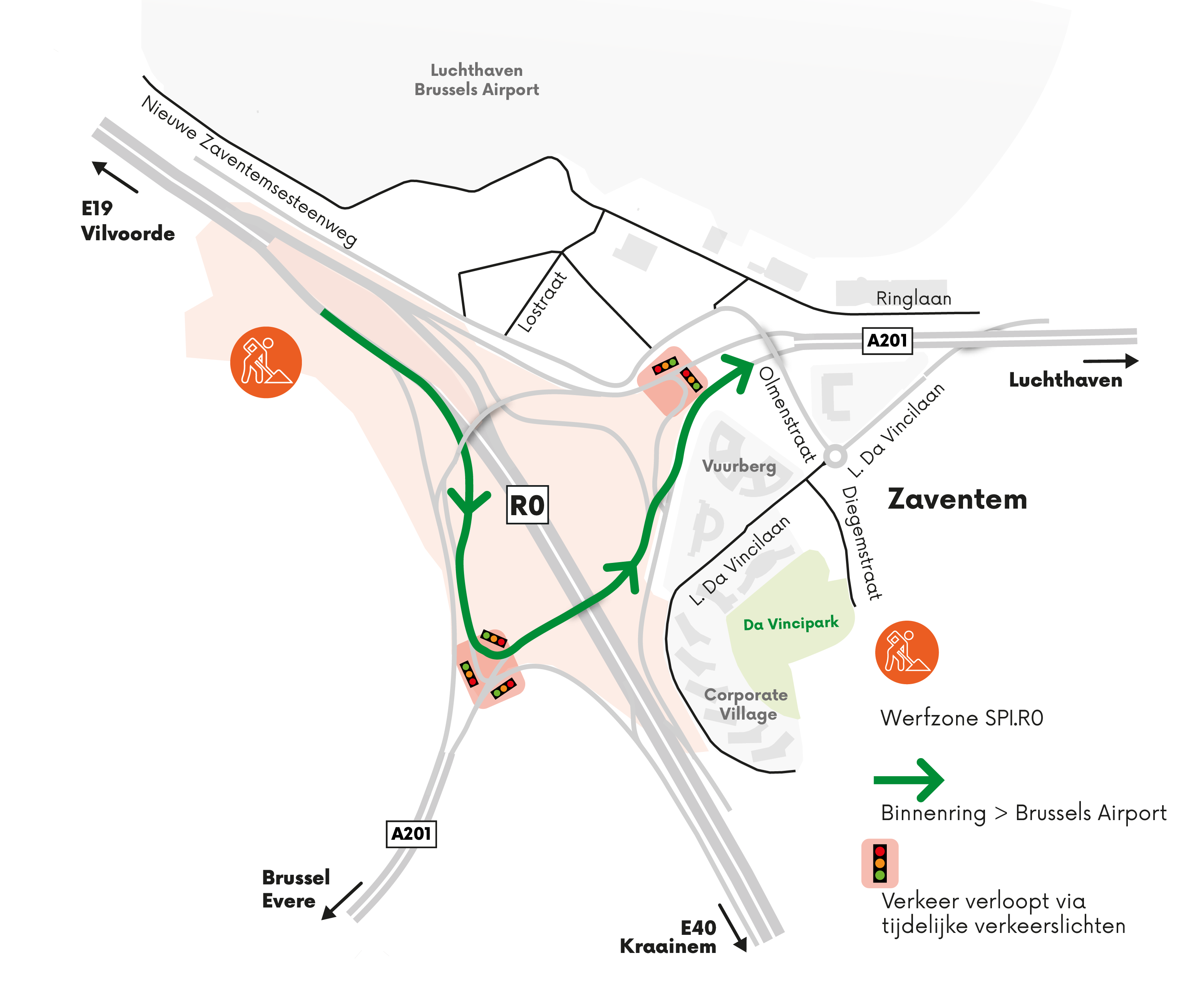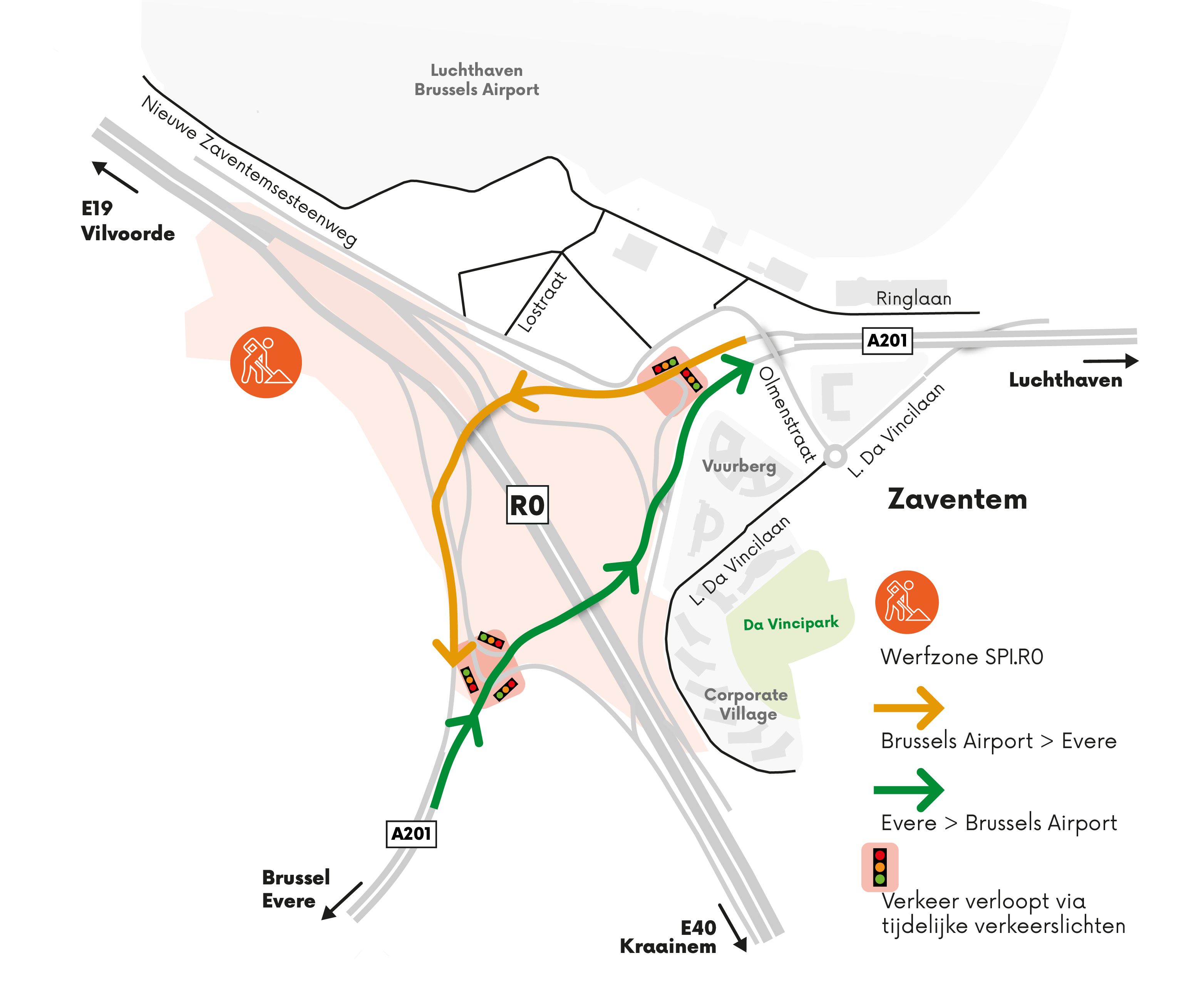 Throughout the entire period, diversions will be in place to ensure access to the airport and your workplace. For your convenience, we will provide a turning loop with traffic lights after the A201 flyover to keep traffic flowing smoothly.
