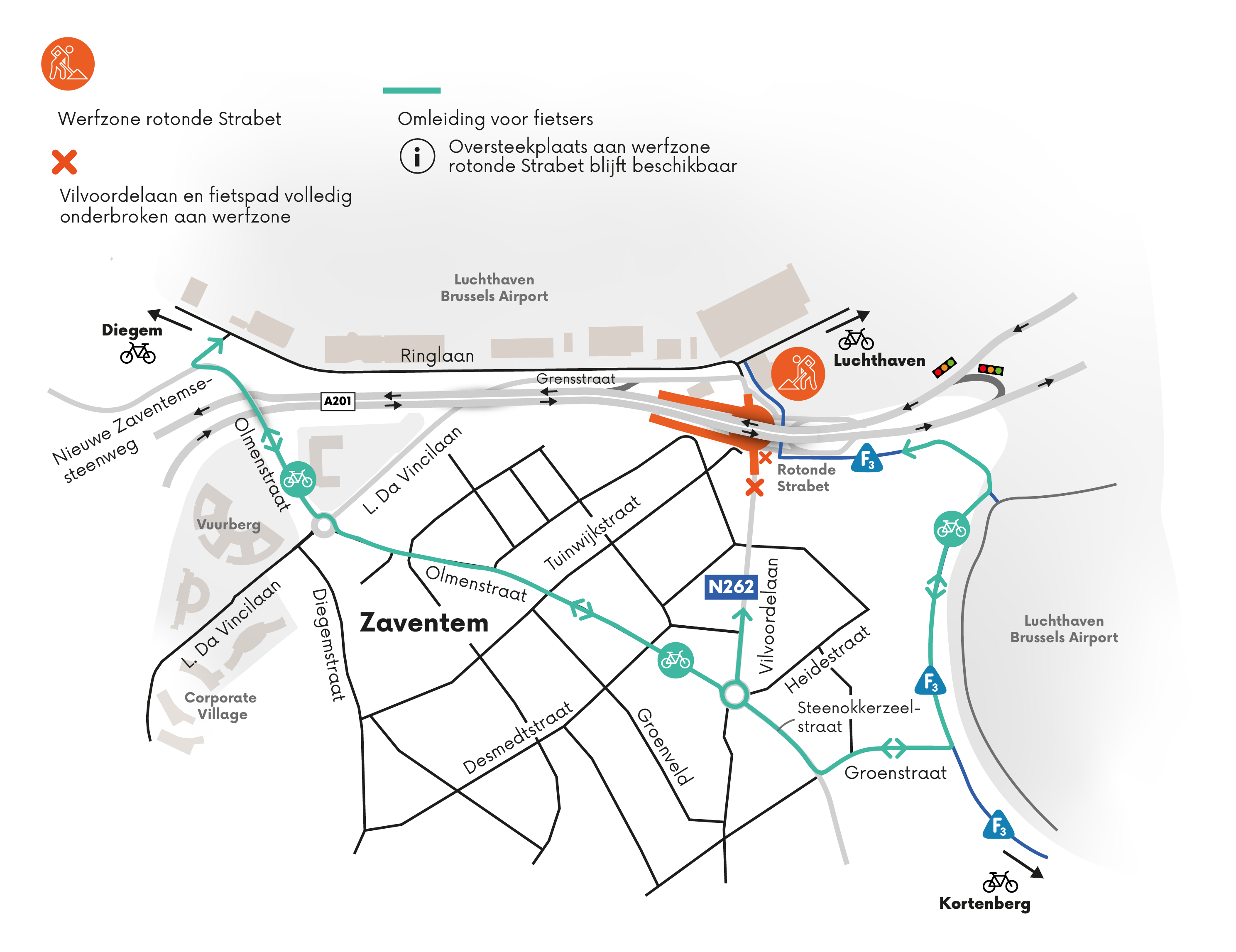 From Zaventem, cyclists and pedestrians will only be affected from April 12–19: