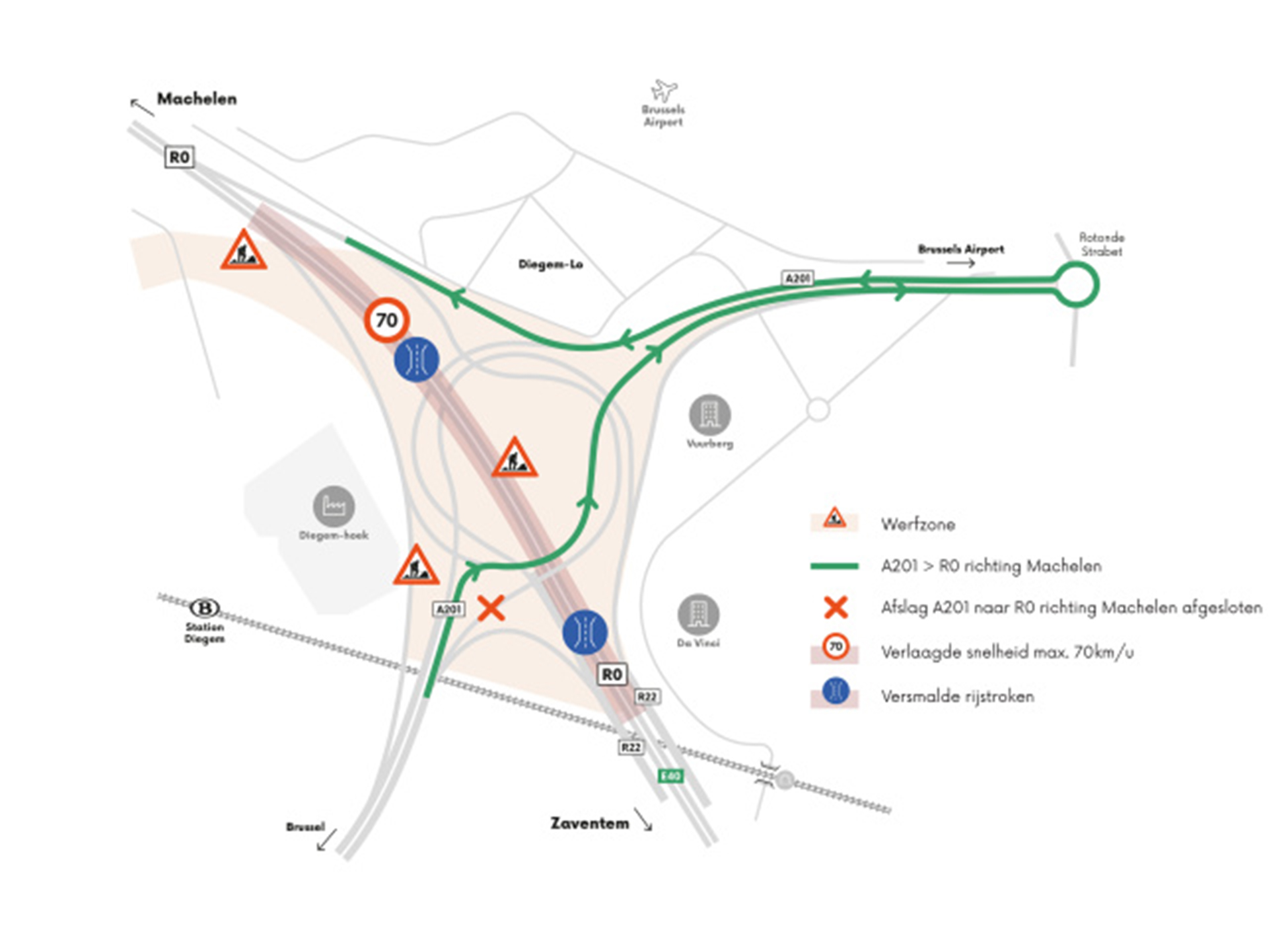 During this weekend, traffic flows on the flyover bridges above the Brussels Ring Road (R0) will be modified. The work will be carried out in phases, with diversions clearly marked with mobile signage.